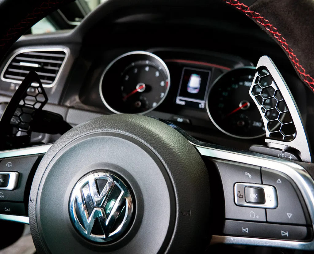 De versterkte aluminium paddles zorgen voor een directe, precieze en sportieve bediening van het DSG-systeem. Ultralicht, zwart gecoat en volledig plug & play: een subtiele mod die je interieur naar een hoger niveau tilt.
