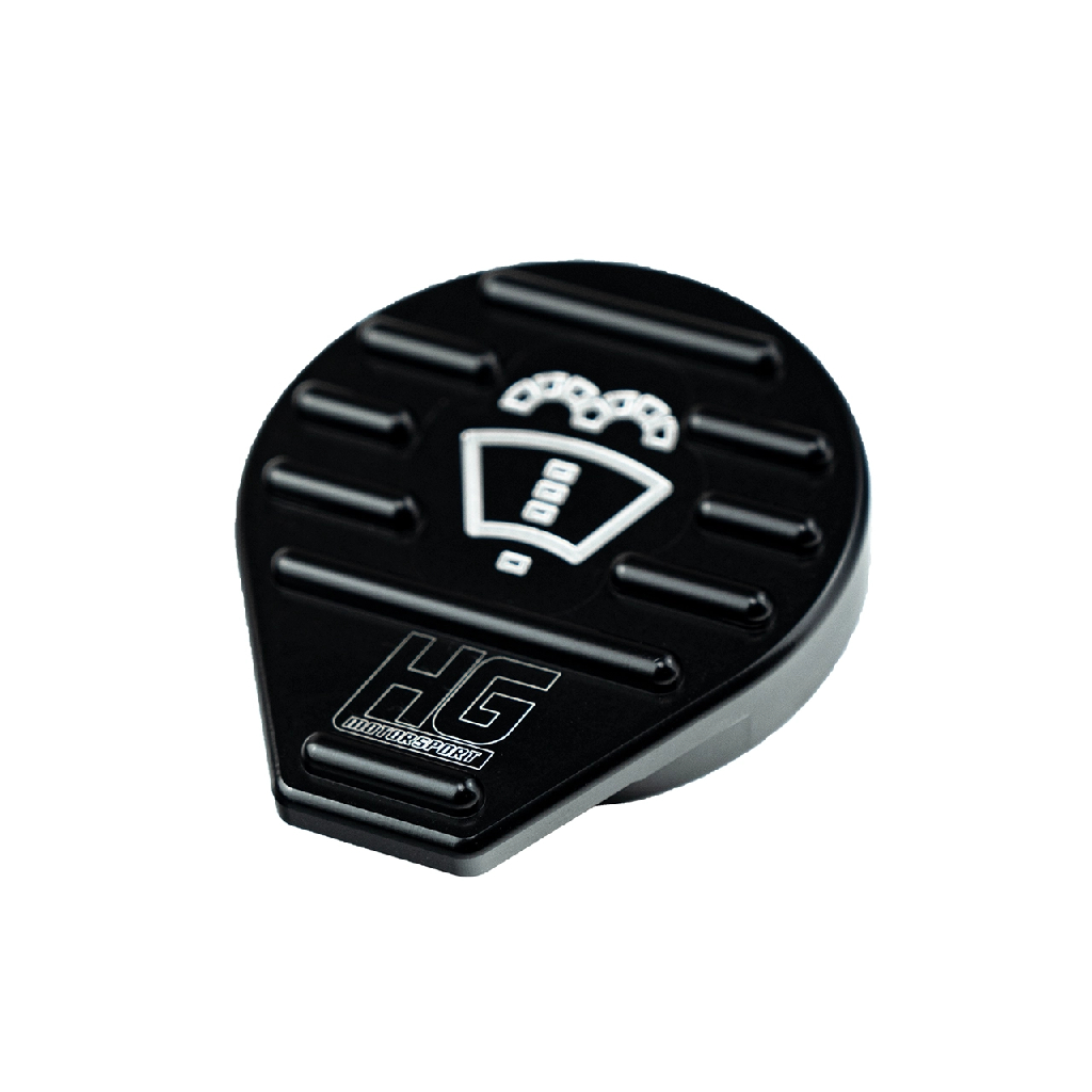 HG Motorsport screenwash cap black ā aluminium ruitensproeierdop die direct extra stijl en kwaliteit toevoegt aan je motorruimte.